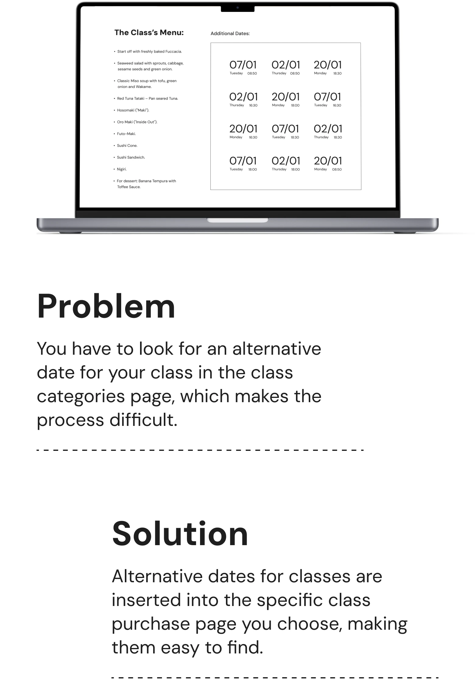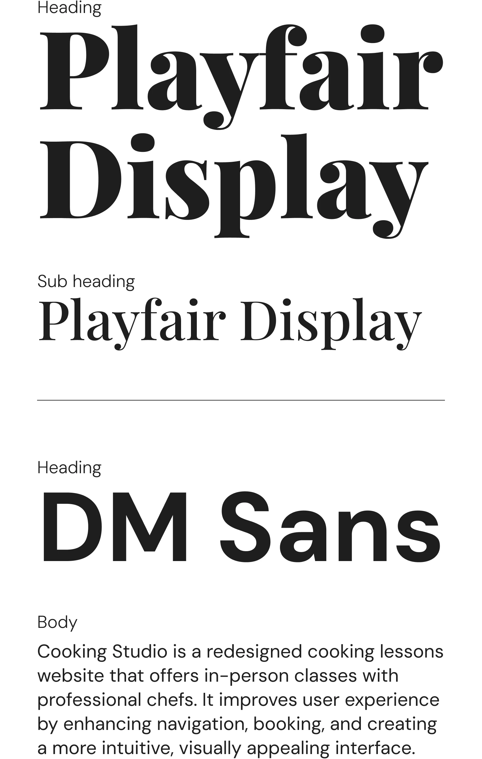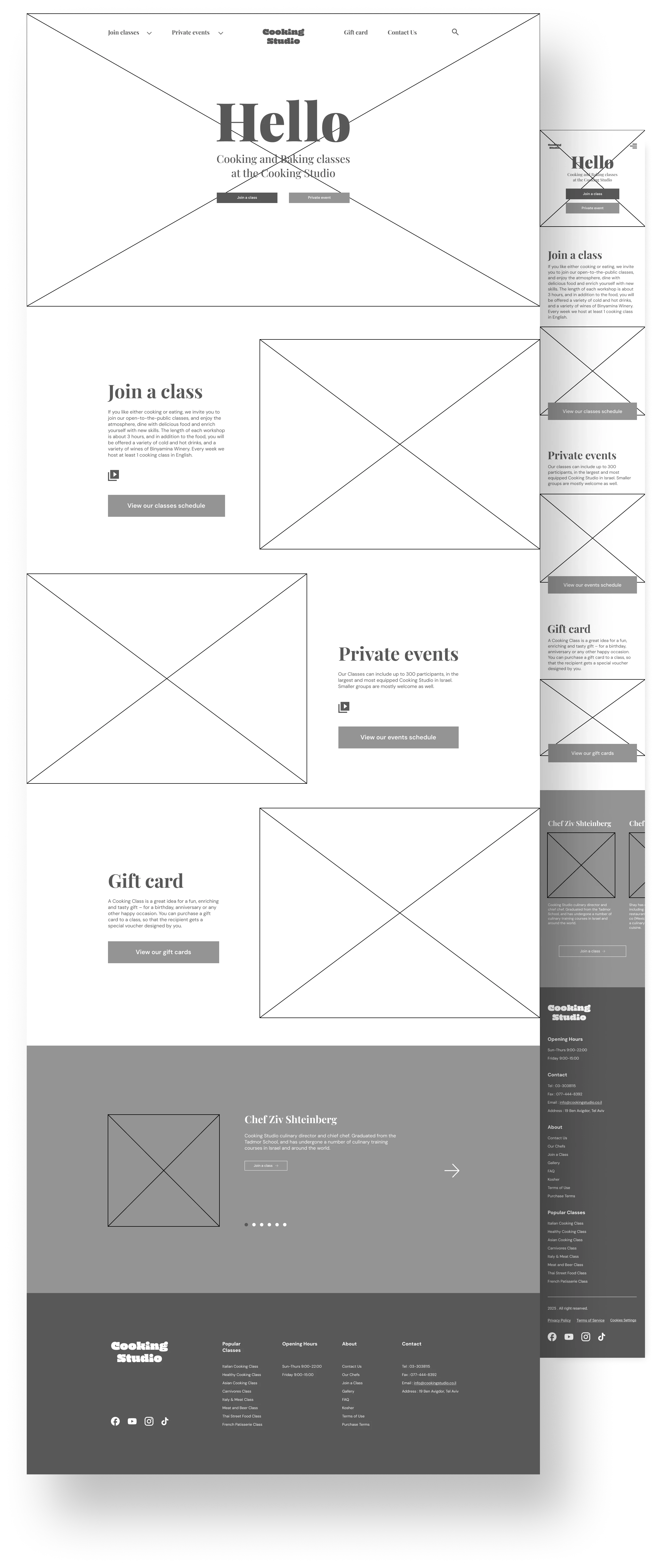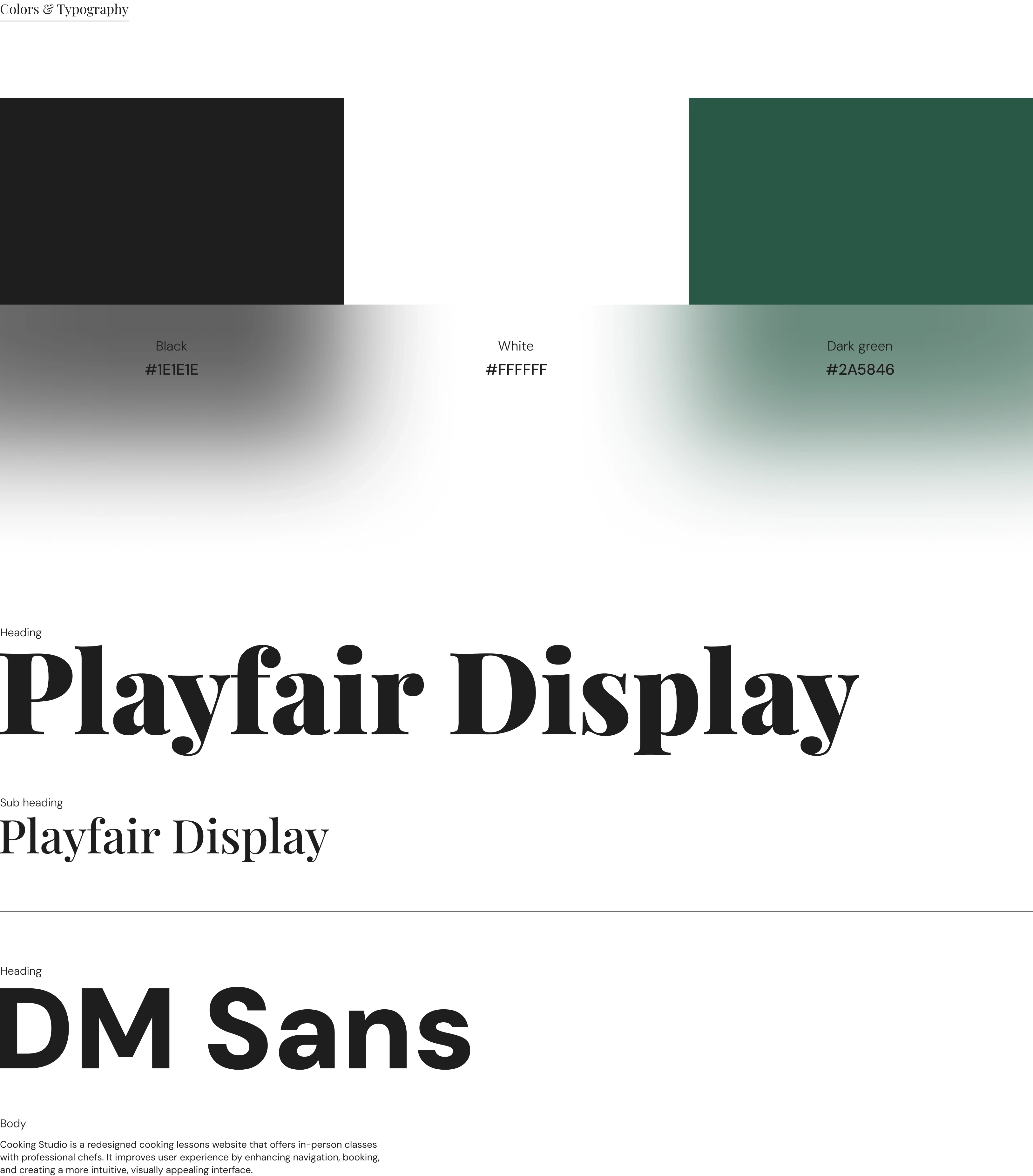 Cooking Studio is a redesigned cooking lessons website that offers in-person classes with professional chefs. It improves user experience by enhancing navigation, booking, and creating a more intuitive, visually appealing interface.